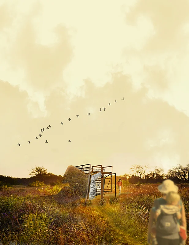 FRINGE is an exhibit of exposure: exposure of waste, exposure of reclamation, exposure to the elements. It is created with the intent to exhibit both the successes and trials of waste management. On average, an American family uses 1,500 plastic grocery bags a year. Of this amount, almost all ends up in the trash or loose in the environment and they do not break down. Austin is the first city in Texas to attempt to mitigate this waste issue by banning all plastic bags within the city limits. FRINGE serves as a tribute to the city’s efforts and those of The Ecology Action of Texas but also as a signifier of the environmental impact of this issue. Mimicking the field and the plethora of plastic bags that lie beneath, FRINGE rents the ground asunder to expose. From afar, the visitor will see the field rise. As they approach, the ground will open up to them. From inside, they will look back out through the bags at what the waste has become: the field. REVEAL THE FIELD.