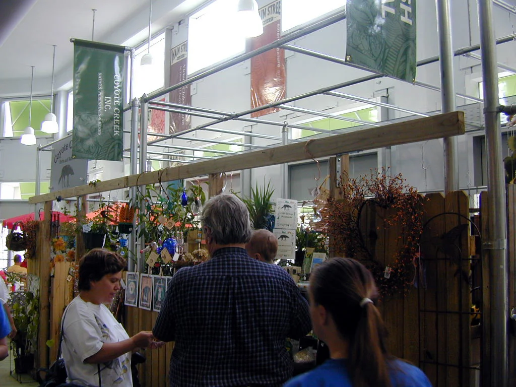 The Main Street Market began as a traditional Saturday market in a parking lot. Vendors rented tented booths, which they put up and took down every weekend. As the market became more successful, it was given a permanent location in a downtown-parking garage. The new space needed to be warm and inviting (contrasting its parking garage location), and as flexible as the original parking lot configuration. The new booth system was to become permanent yet retain the ability to house varying occupants. The booths also had to provide signage opportunities and designate leasable square footage. Like any city project, the entire system and interior had to be affordable and easy to assemble.
