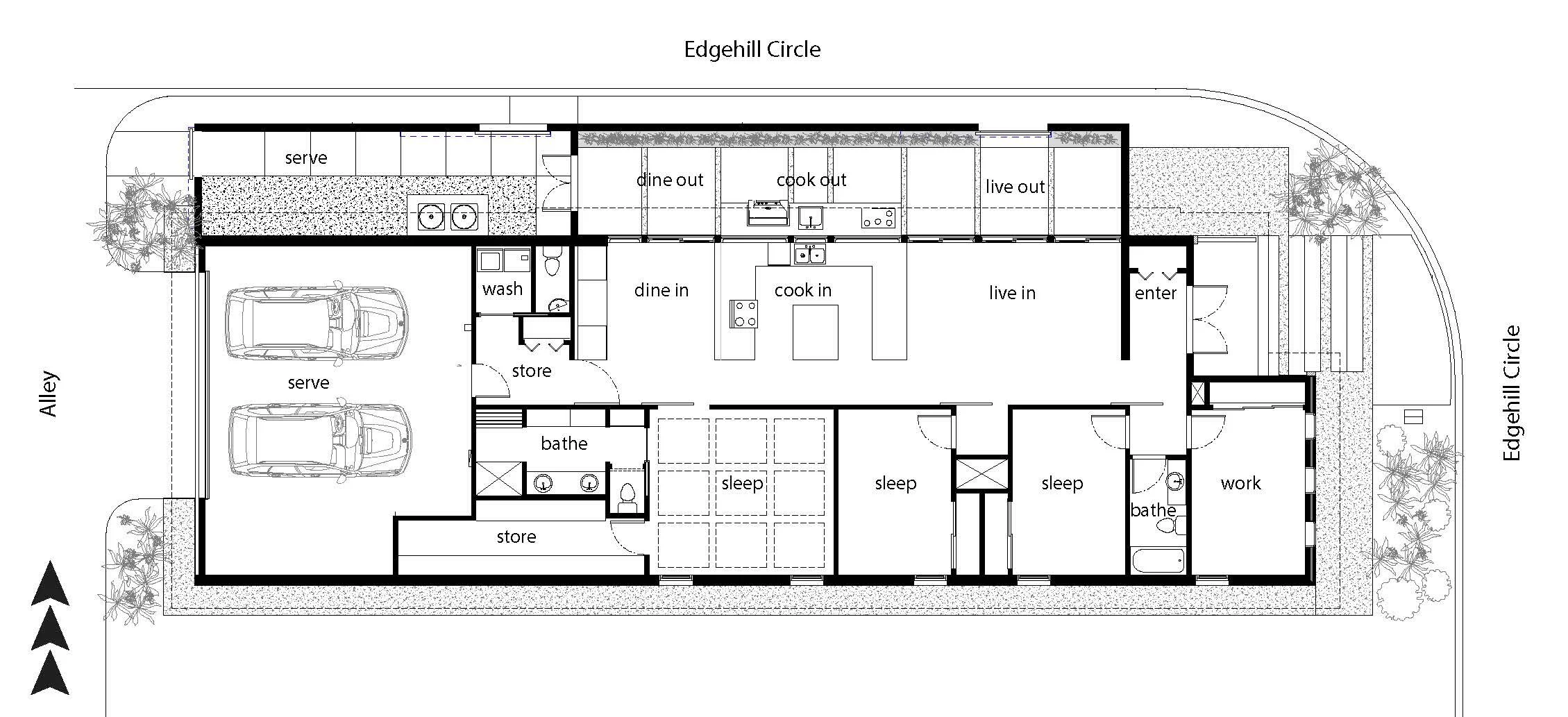 Spatially, the home consists of 3 zones; an interior and an exterior public zone, and a private zone.